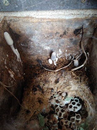 jsem začátečník, vloni jsem měl jeden čmelín, povedlo se mně ho zabydlet, ale po 14 dnech čmelák zmizel, nejspíš nehoda na pastvě? Letos mám dva čmelíny, na oba jsem potřeboval asi 30 pokusů, než se zabydleli (dle mého čmelák skalní). Do jednoho úlu létal čmelák asi dva měsíce, ale hnízdo nezaložil, pak už se neukázal. Ve druhém úlu byl po čase pěkný "provoz", bylo radost sledovat, jak létají tam a ven. Koncem srpna se frekvence letů zmenšila, začátkem září ustala docela. Otevřel jsem úl a katastrofa. Uvnitř byla plíseň, nějaké pavučiny, rostly tam jakési houby. Asi nemá smysl čmelín čistit, ale spíš ho vyhodím a vyrobím nový.